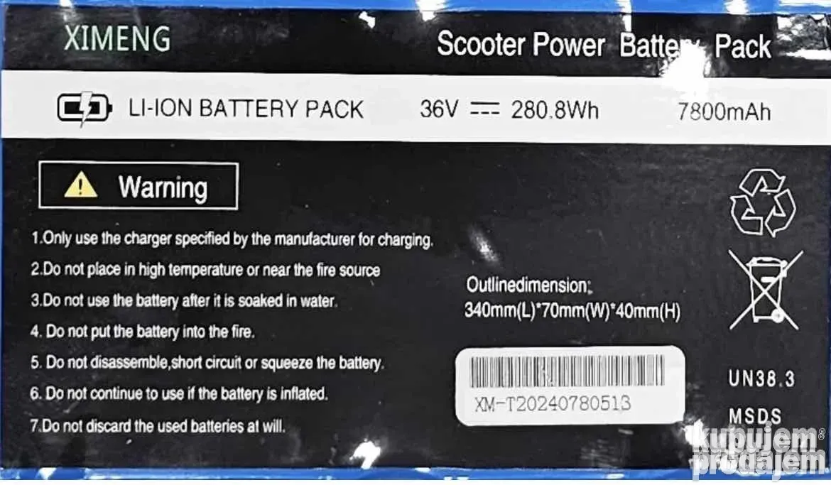 baterija za elektrocni trotinet 36V 7.8AH odlicnog kvaliteta brenda XIMENG