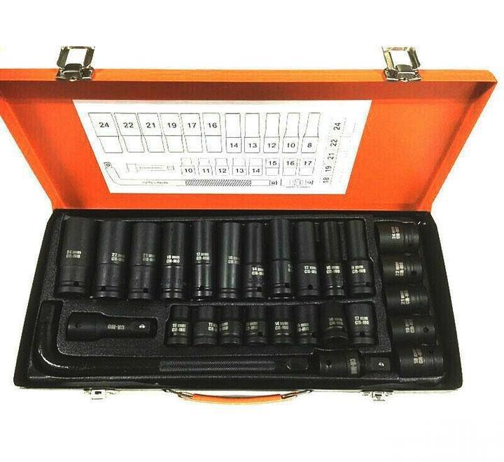 11kom- 1/2” utičnice za duboki udar : 8, 10, 12, 13, 14, 16, 17, 19, 21, 22, 24 mm